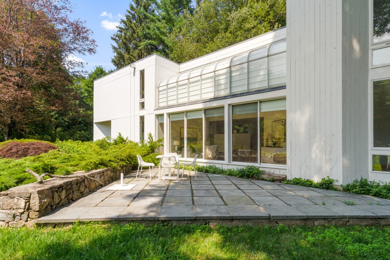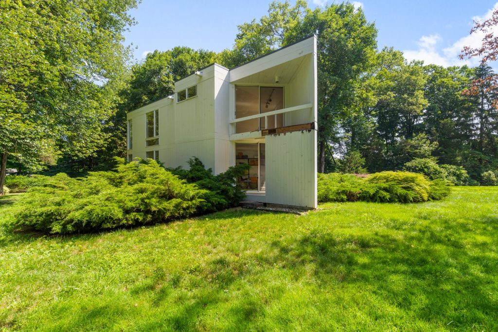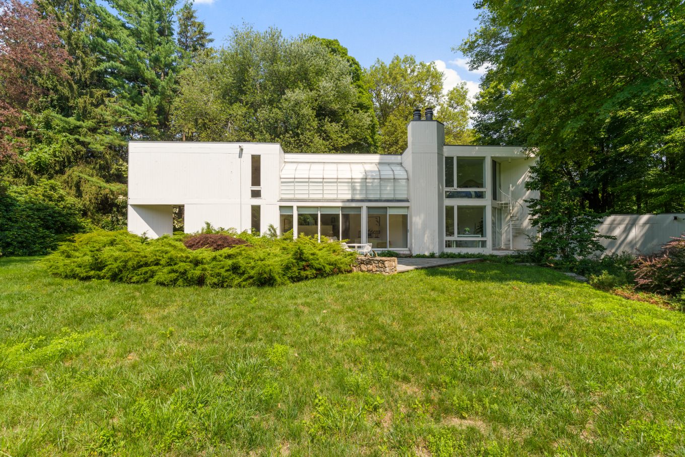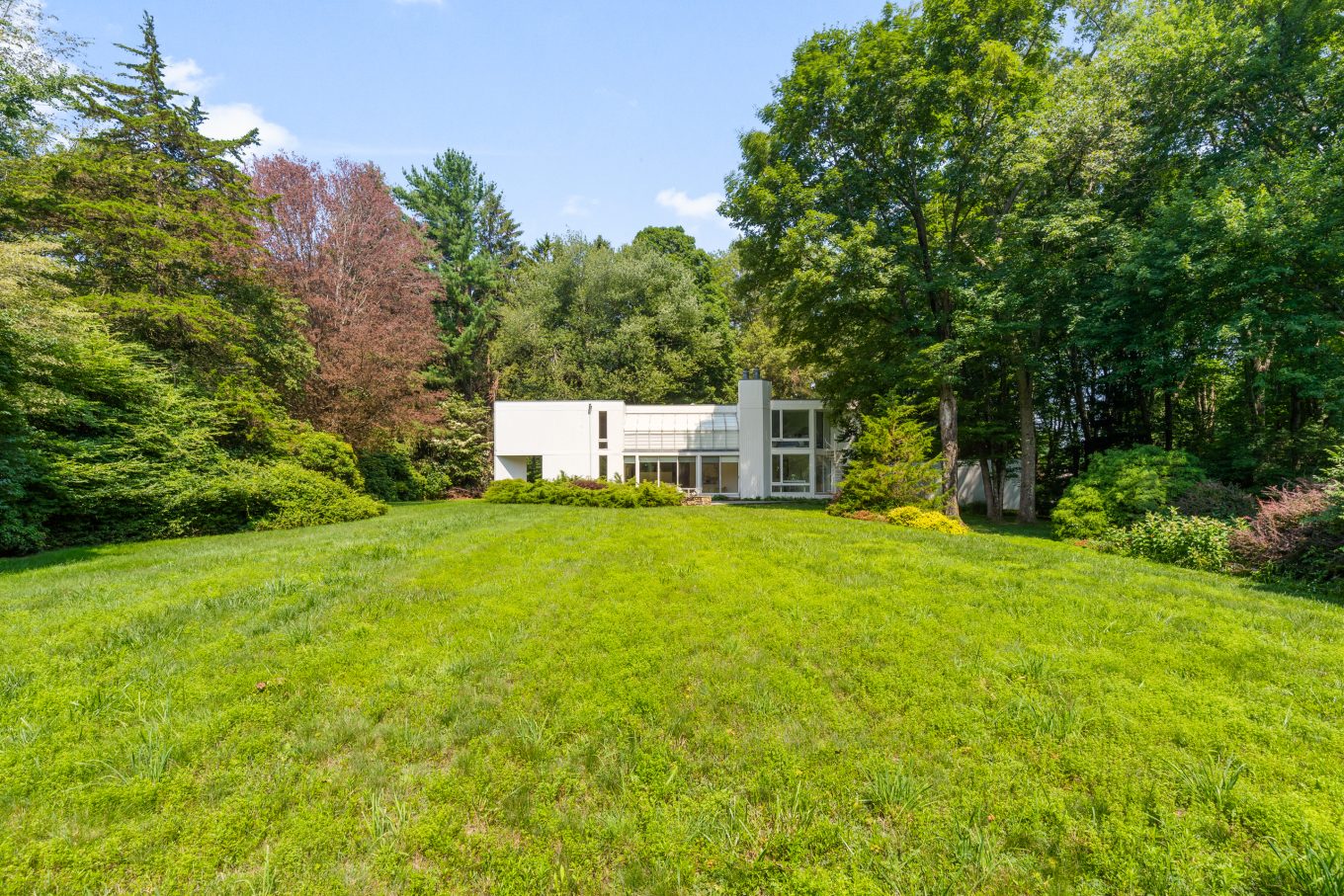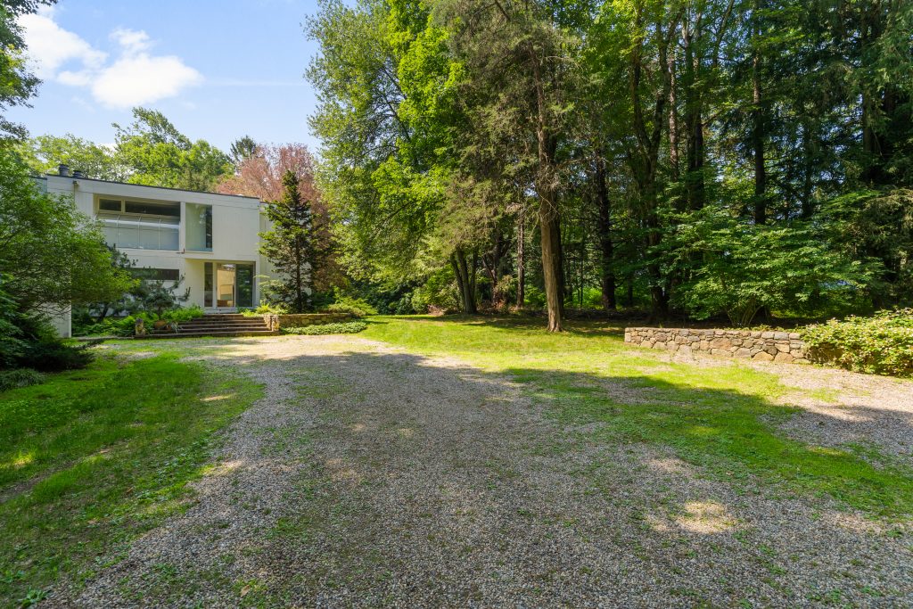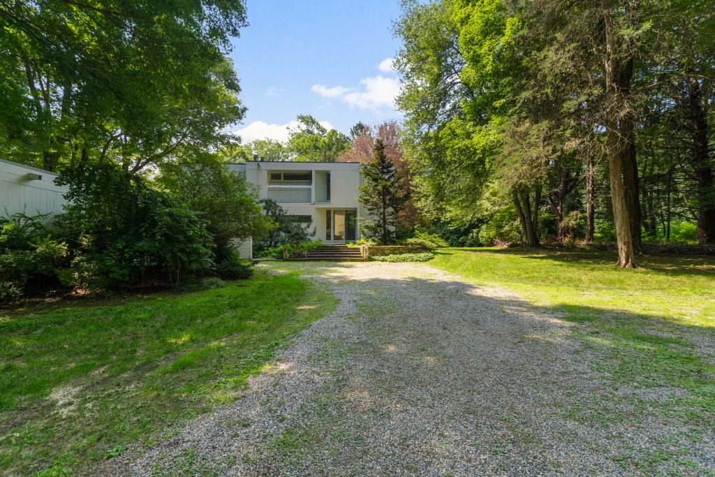Welcome to an extraordinary modern masterpiece, expertly crafted by the renowned modernist, inspired by the legendary architect Le Corbusier. This striking home, built in 1978, embodies timeless elegance and sophistication, poised to be transformed into the next generation of modern living. With impressive 25-foot ceilings adorned with double levels of windows, this house opens up to just under 3 acres of pristine, flat land.